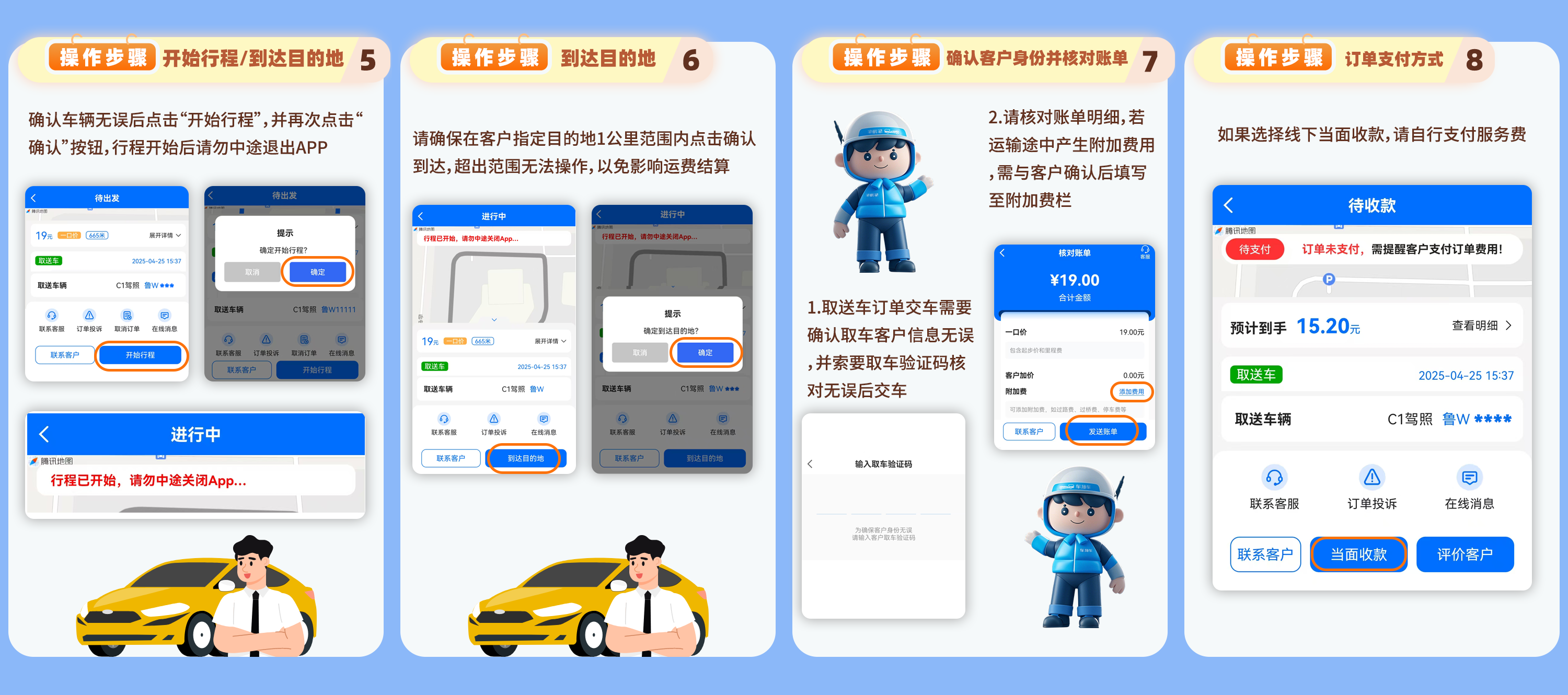 👉到达出发地、目的地要在1公里范围内点击确认