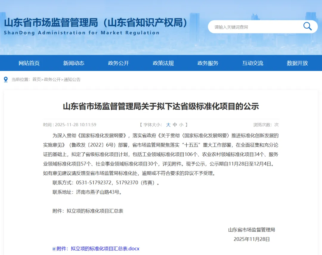 此次省级标准化项目的评选,是山东省落实《国家标准化发展纲要》、推进“十五五”标准化创新发展的重要举措。全省共确定工业、农业、服务业、社会事业四大领域227个标准化项目,其中服务业领域仅57个席位。